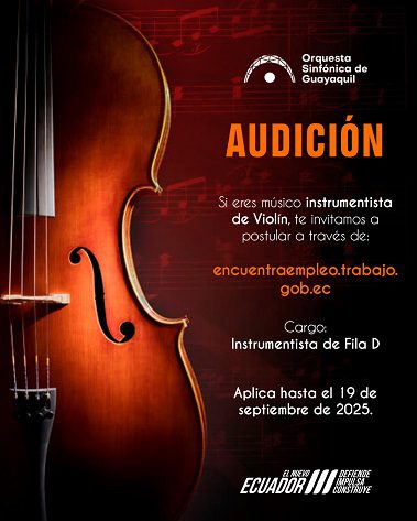 La Orquesta Sinfónica de Guayaquil abre convocatoria para músicos interesados en formar parte de nuestra